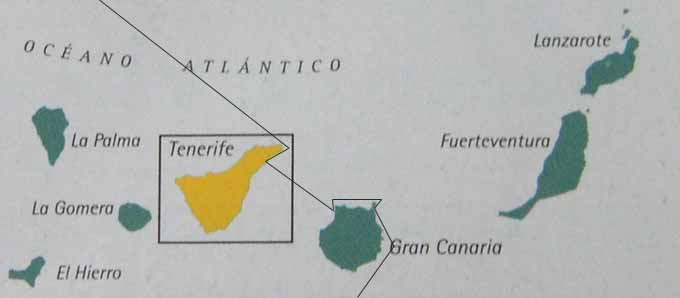 taille, j'ai même rempli quelques bocaux de conserve. Après 7 jours de navigation, par calme plat, nous approchons de l'île de Tenerife dont le point culminant, le Mont Teide, est à plus de 3700 mètres. Ce n'est qu'à 2,5 miles de l'île que le rideau de brume se déchire et que nous apercevons la cote nord de l'île. En contournant la pointe Nord-est qui s'appelle Anaga, le vent s'accélère brutalement. Nous passons de 0 à un vent de Nord-est de 40 noeuds. C'est un effet local dû au relief des îles. Nous longeons la côte vers la ville principale qui est Santa Cruz de Tenerife.