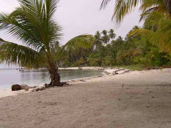 Nous arrivons en vue de l'archipel des Mulatas. De tous petits îlots recouverts de cocotiers et de palmiers sans oublier le sable blanc tout cela délicatement posé sur la mer : tableau idyllique. Au sud des îles, on devine la côte du continent sud-américain d'une hauteur de 700m. L'air ambiant est très humide et l'ensemble des îles est couvert d'une brume très légère qui diminue la visibilité. Juste avant d'entrer dans le chenal de San Blas, les fonds remontent de 1000 m à 100 m, je surveille nos lignes de pêche. Un énorme thon dont je ne verrai que le dos rond, cisaille net une des deux lignes, et sur l'autre ligne se prend un thon de 50 cm que l'on remonte très rapidement. Le repas du soir est assuré. Nous entrons dans le chenal des San Blas, et la mer s'aplanit. Au mouillage de Porvenir, il y a trois voiliers. Une grande partie des maisons du village de Porvenir sont toutes petites, les murs sont des tiges de bambous liées et le toit de la chaume. On retrouvera le même style de maison sur les îlots.